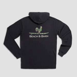 Surfers, beachgoers and outdoor enthusiasts wear the Camo Surfing Rooster Hooded Tee to showcase style while staying comfortable. They rely on its lightweight cotton blend and breathable mesh panels, slipping it over swimwear or pairing it with shorts around the shore. It appears on beaches, boardwalks and casual outings where sun and breeze present shifting conditions. This tee adds camo flair and layered coverage whenever wind picks up or temperatures shift.