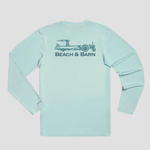 The Tractor Pool Sunshelter Shirt offers excellent protection from the sun's harsh rays. Made from a blend of 91% high-quality wicking polyester and 9% Spandex, this shirt is lightweight and provides UPF 50 protection. The sublimated Surfing Rooster™️ logo ensures comfort without distraction.